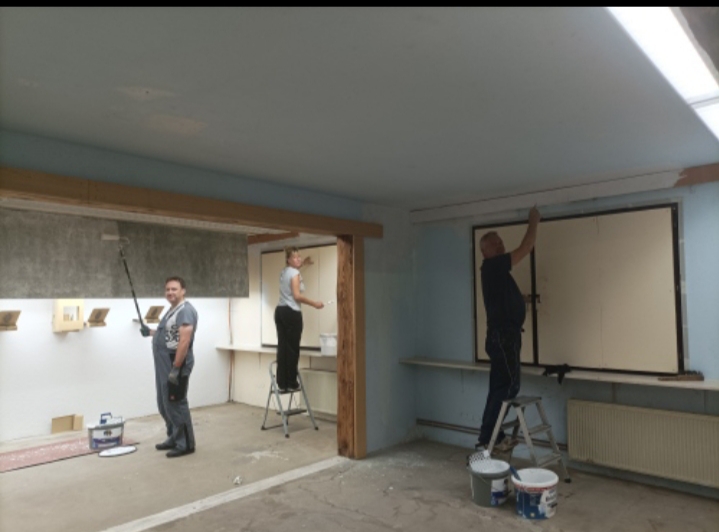 Im August 2023 fing alles an, el. Anlagen waren organisiert und die Benefizveranstaltung stand vor der Tür. Die Lufthalle wurde von uns gemalert und unser Trainingsstand nahm langsam neue Gestalt an, die Männer nahmen sich die Zeit uns zu unterstützen.